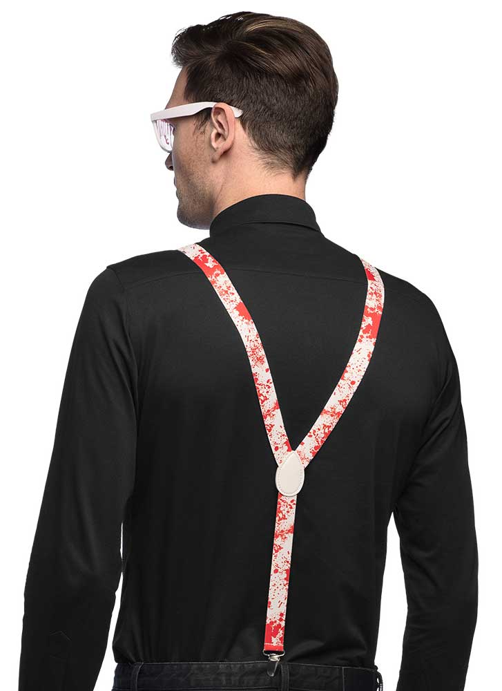 Deze accessoireset Bloody bestaat uit een partybril, vlinderstrik en bretels voorzien van een bloederige print.