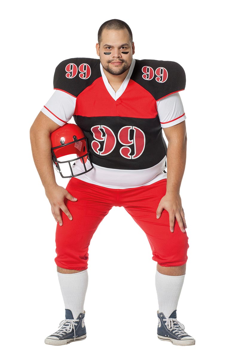 Een mooi American Football Kostuum voor Heren in de kleuren rood, wit en zwart.