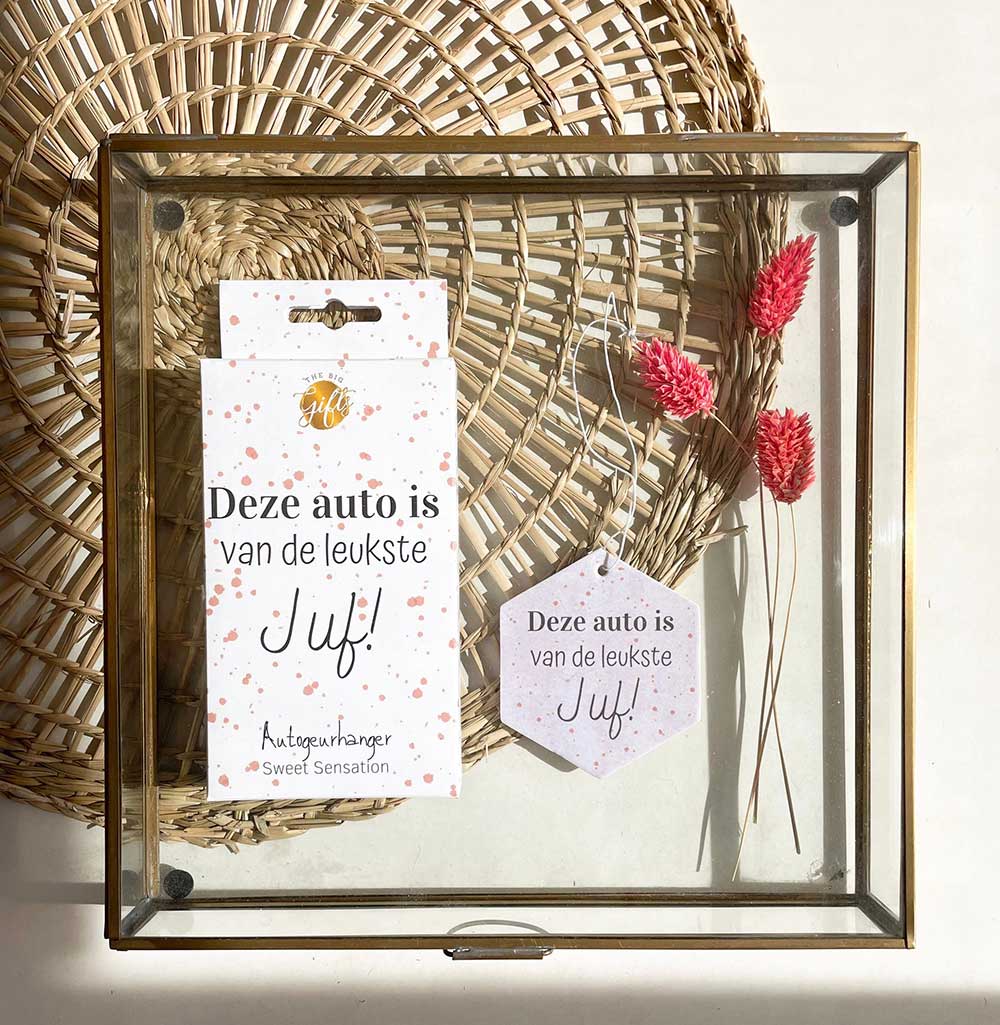 Deze Autogeurhanger Juf is niet alleen lekker, maar ziet  ook nog eens leuk uit en zit in een leuke verpakking.