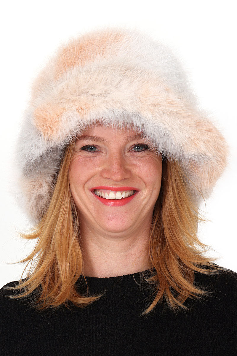 Deze luxe bontmuts in warme peach-witte tinten is dé perfecte winteraccessoire. De muts voelt heerlijk zacht aan, houdt je hoofd comfortabel warm en geeft elke outfit een stijlvolle, chique uitstraling. Dankzij de natuurlijke kleurverloop combineert hij moeiteloos met zowel casual als elegante winterlooks.