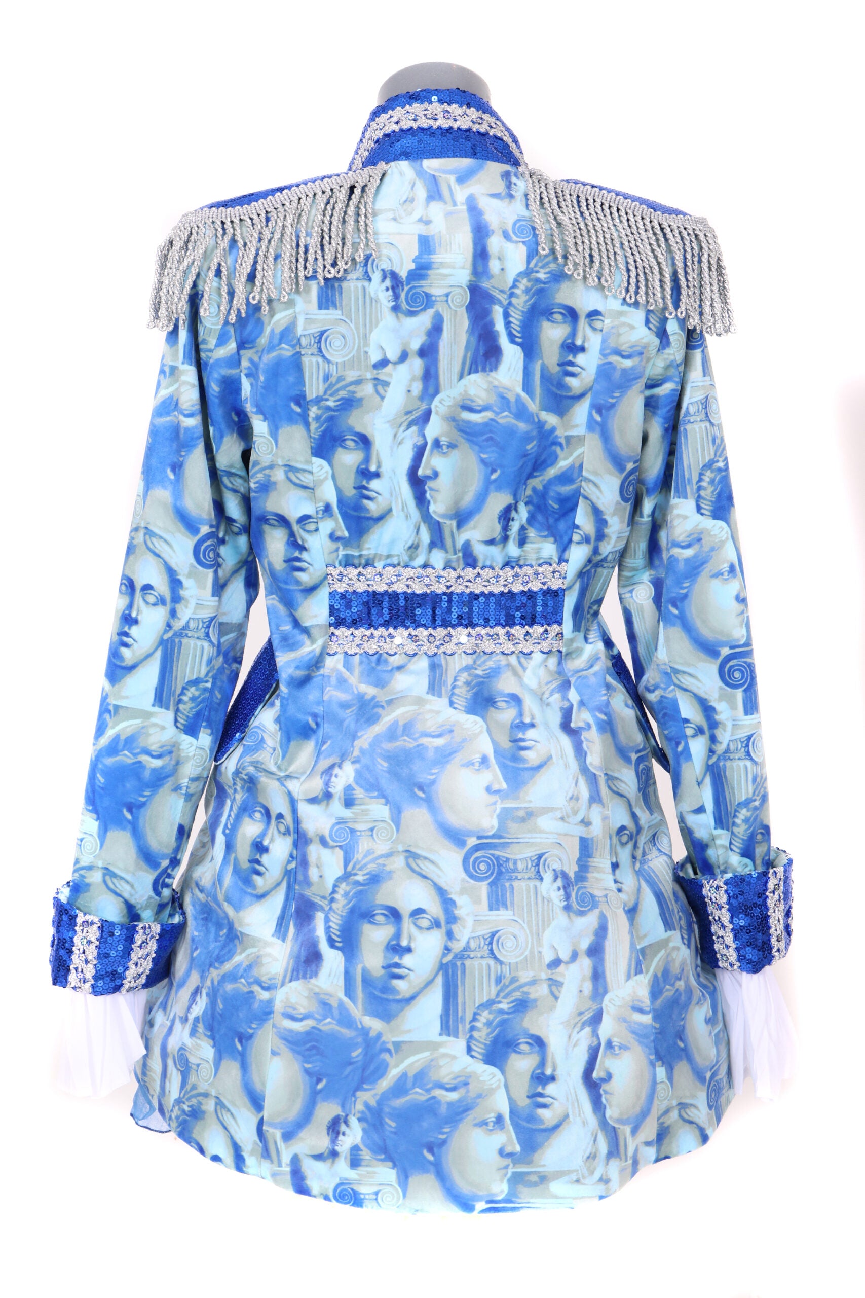 Een mooie carnavalsjas met gekleurde accenten. De jas is op de schouders afgewerkt met prachtige details.