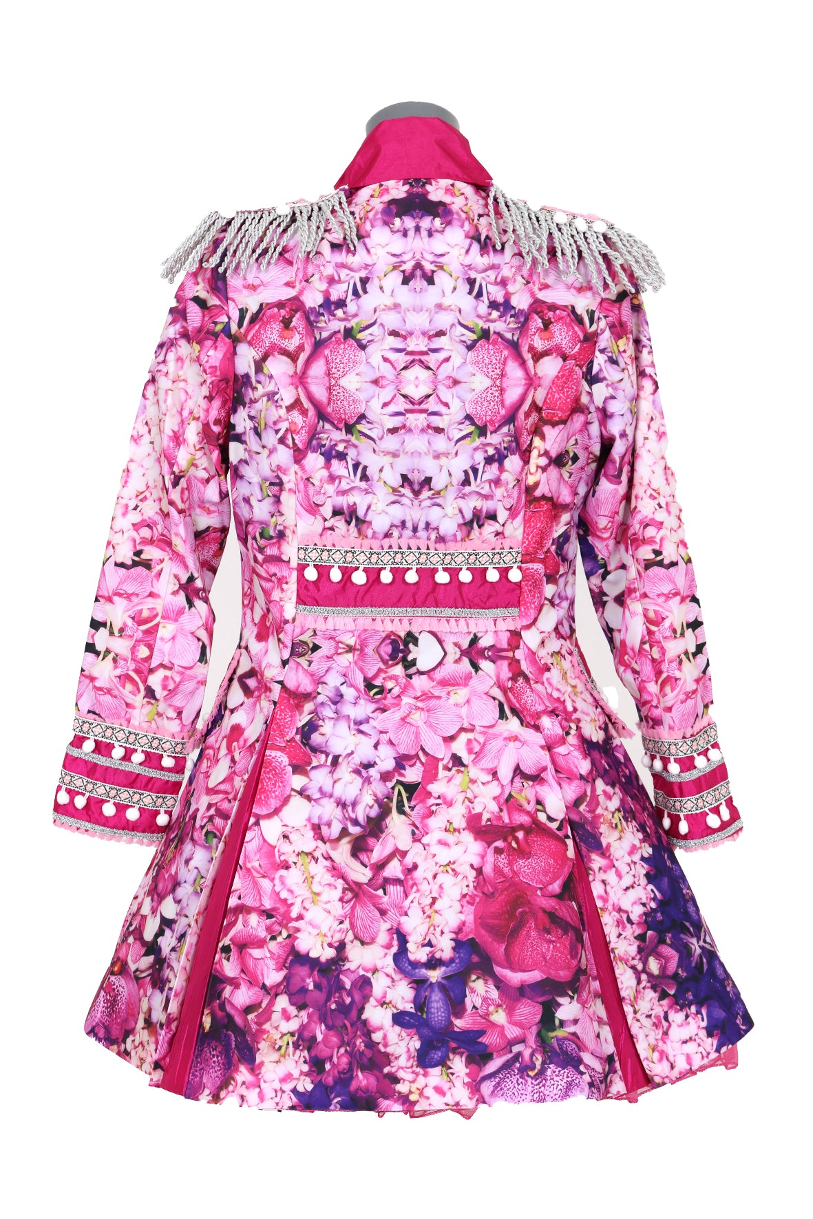 Een mooie carnavalsjas met gekleurde accenten. De jas is op de schouders afgewerkt met prachtige details.