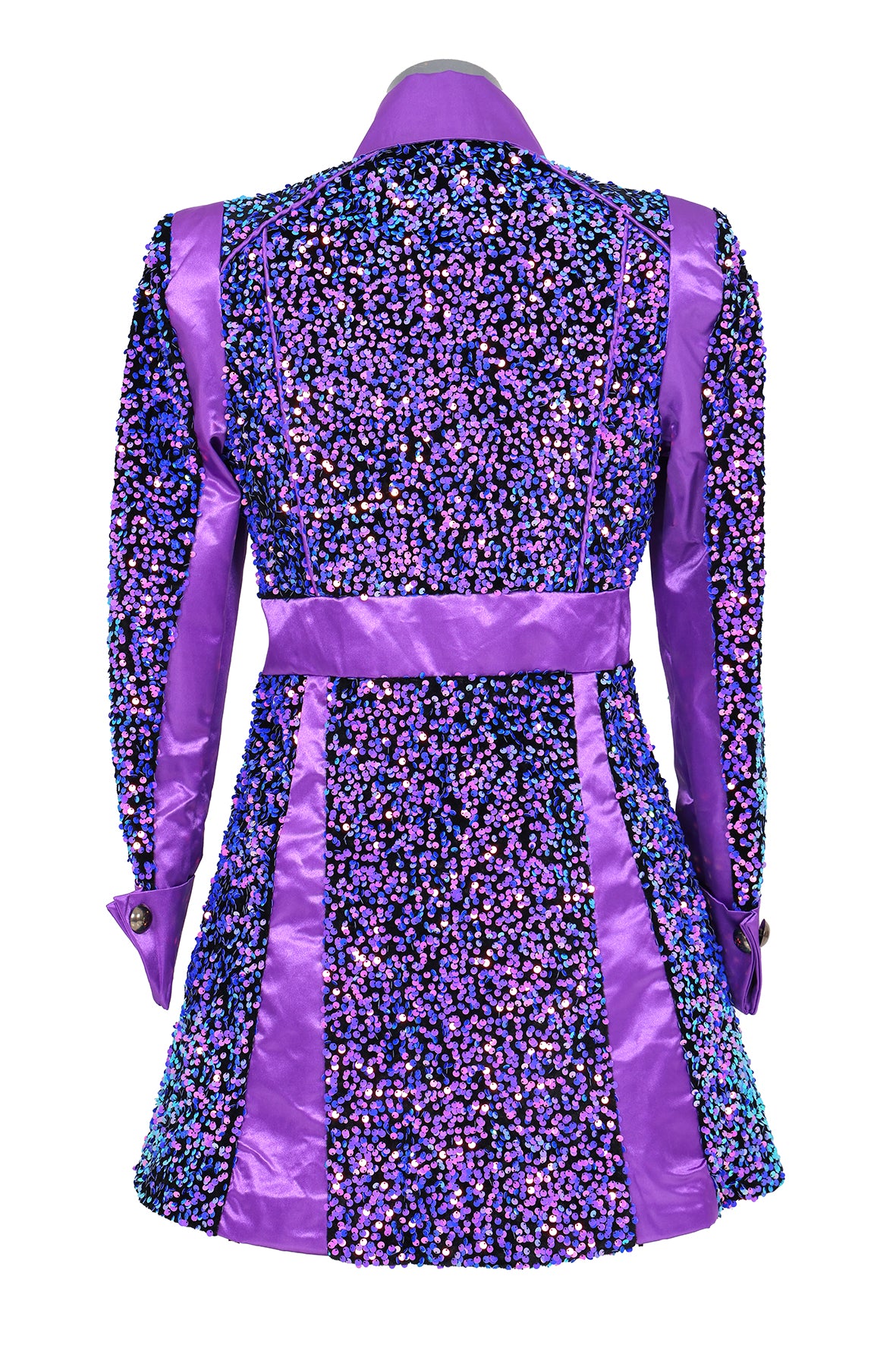 Details: Opstaande kraag, koper kleurige knopen en over de gehele jas zitten pailletten