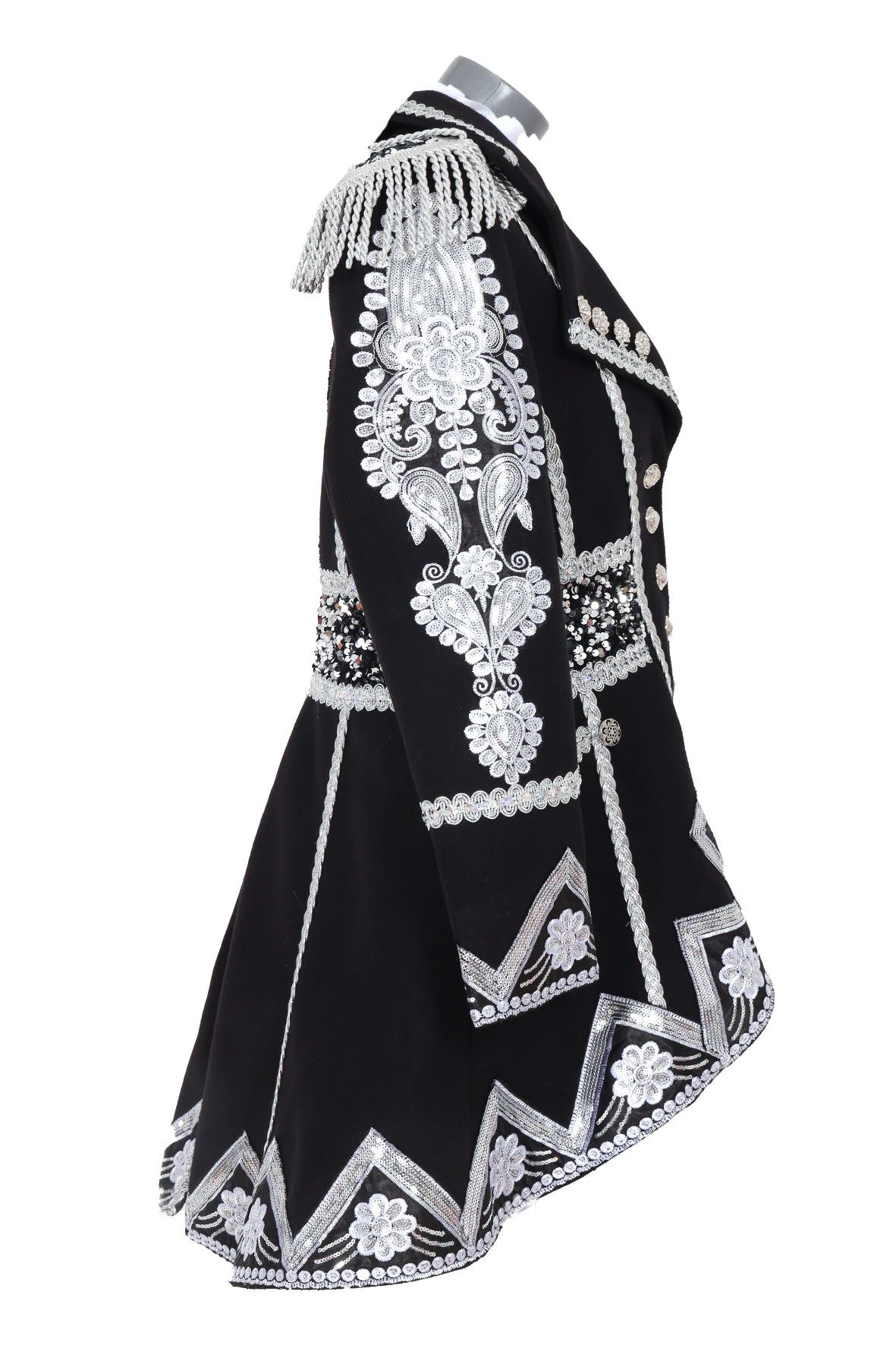 Een mooie carnavalsjas dames zilver deluxe. De jas is op de schouders , aan de voor- en achterzijde en op mouwen afgewerkt met prachtige details.