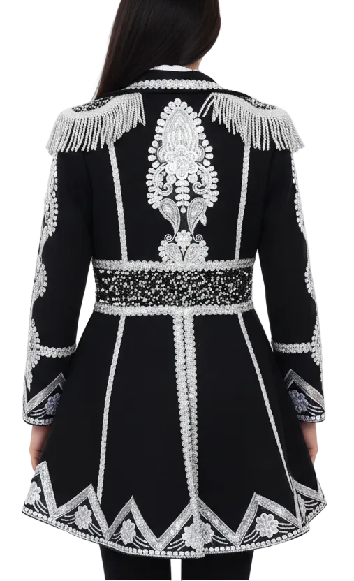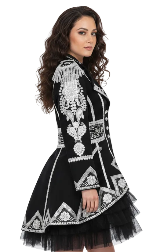 Een mooie carnavalsjas dames zilver deluxe. De jas is op de schouders , aan de voor- en achterzijde en op mouwen afgewerkt met prachtige details.