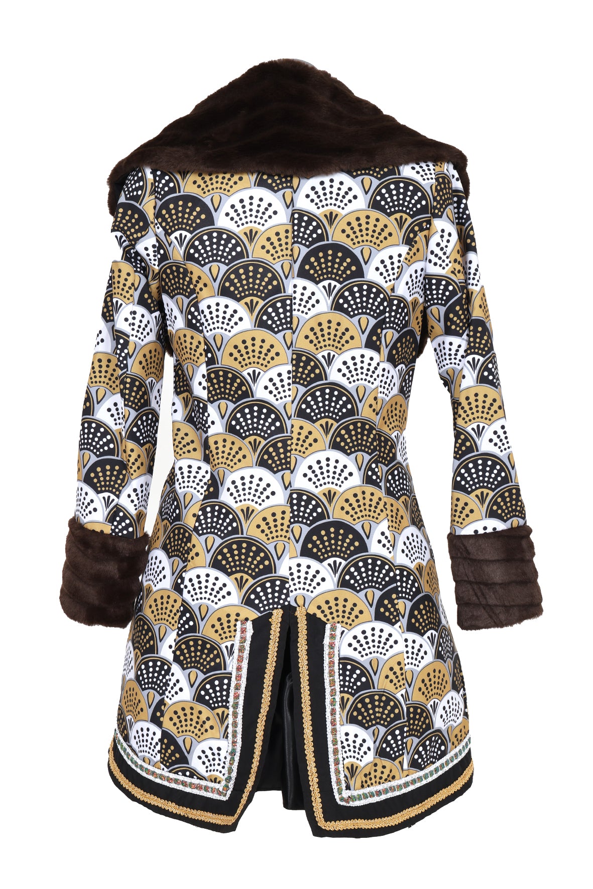 Een mooie carnavalsjas met gouden en zilveren accenten. De jas is op de schouders afgewerkt met gouden details.