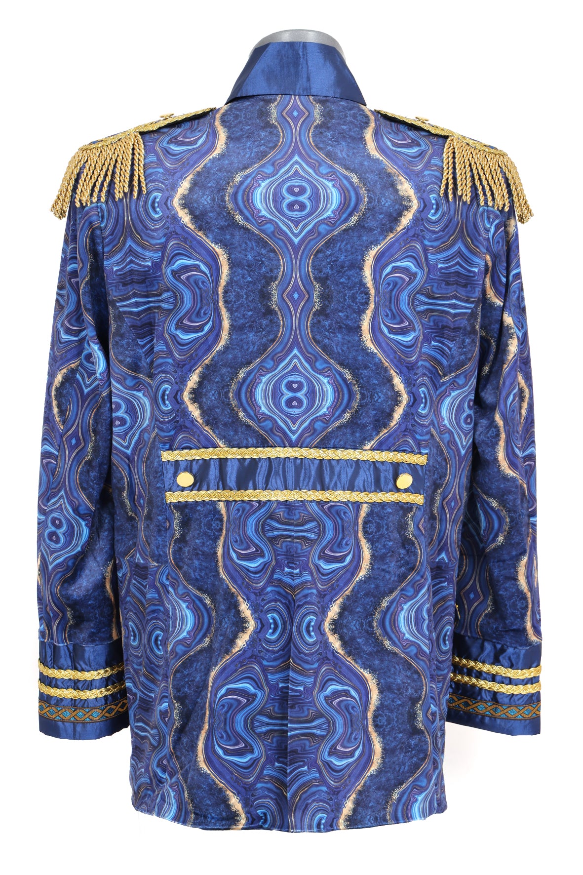Een mooie carnavalsjas met gekleurde accenten. De jas is op de schouders afgewerkt met prachtige details.