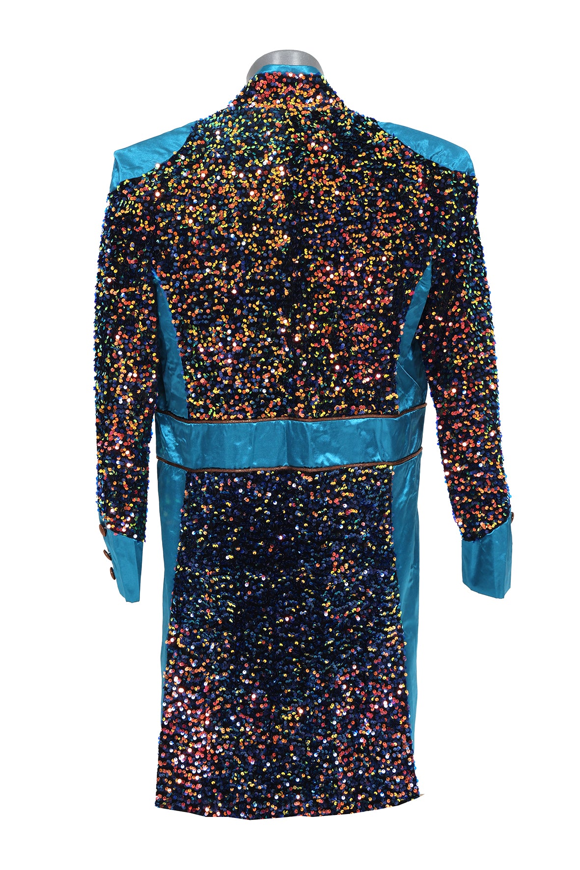 Een mooie carnavalsjas met gekleurde accenten. De jas is op de schouders afgewerkt met prachtige details.