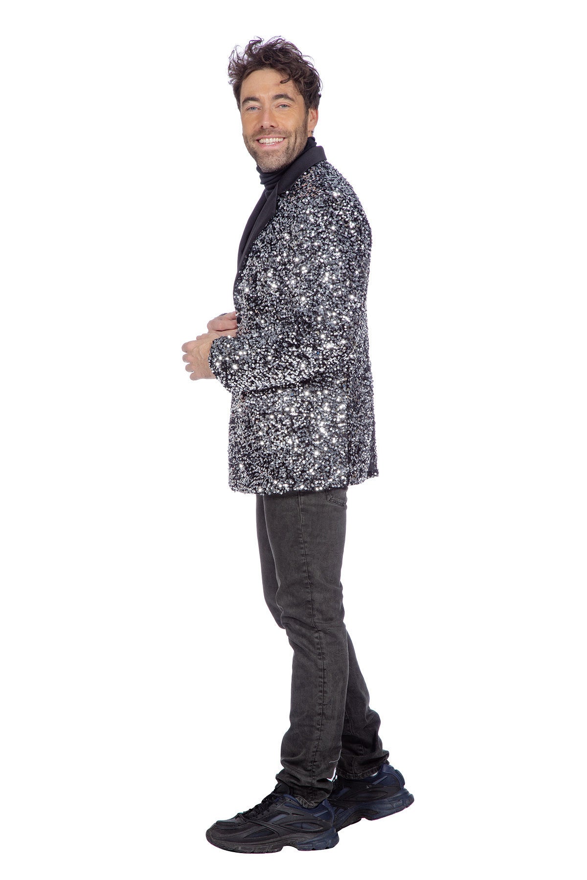 Een tof opvallend Colbert Luxe Pailletten Zilver voor Heren.