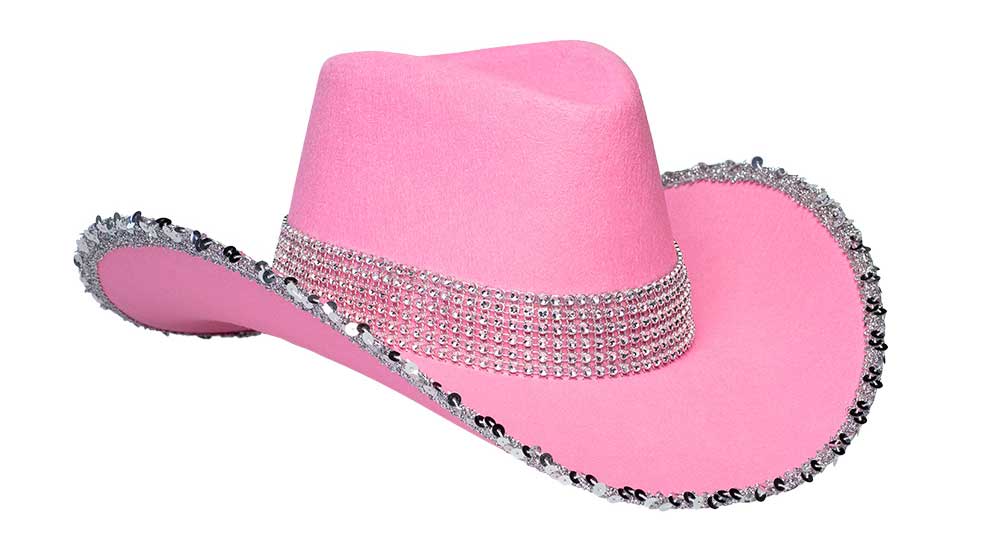 De Cowboy Hoed Girls Party is een stoere roze cowboyhoed met glimmende volop zilveren en witte studs.