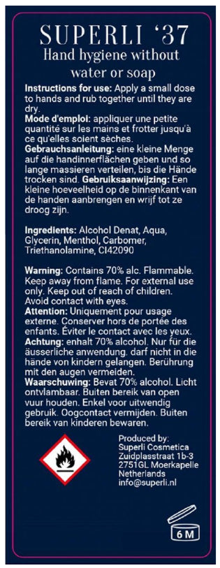 Desinfecterende handgel biedt een goede bescherming tegen bacteriën en besmetting. De handgel van Superli met een alcoholpercentage van 70 % helpt bij de bestrijding van bacteriën en de bescherming tegen bacteriën en besmetting.