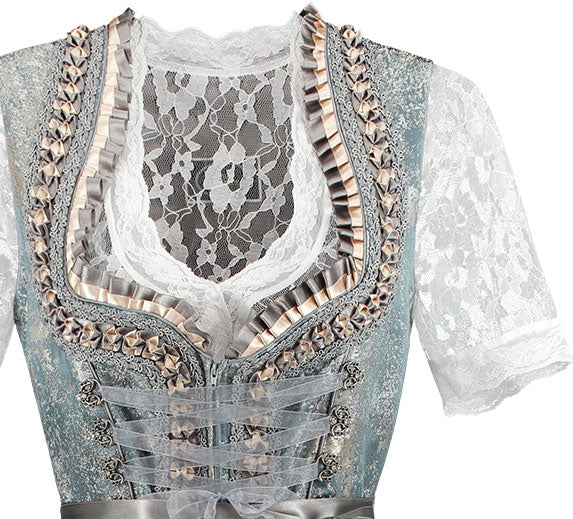 Een toonbeeld van ingetogen luxe en klassieke schoonheid: deze 2-delige dirndl in antiekblauw en zilvergrijs van Haus Huberts straalt tijdloze elegantie uit.