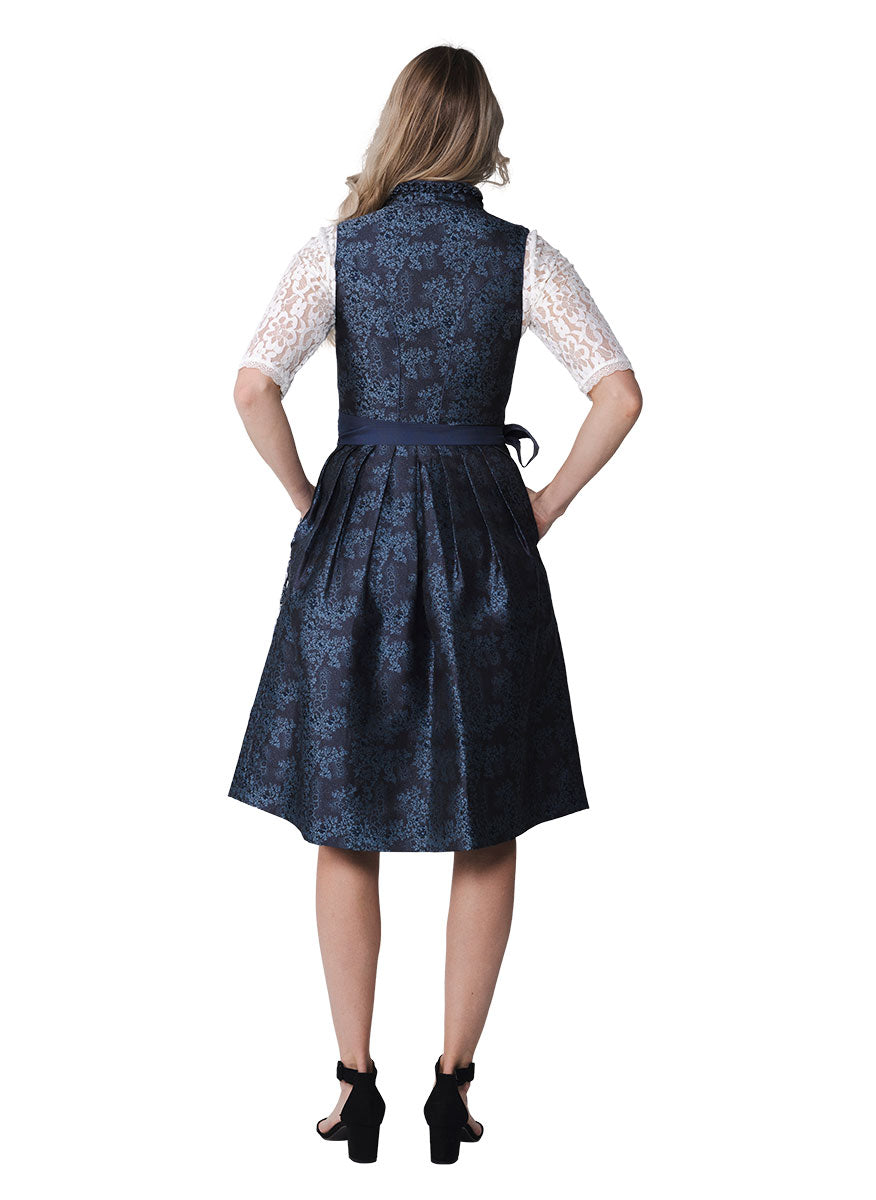 Met deze nachtblauwe jacquard-dirndl van Haus Huberts maak je gegarandeerd indruk – een stijlvolle keuze voor vrouwen met oog voor detail én uitstraling. De diepe nachtblauwe kleur straalt klasse en rust uit, terwijl het glinsterende jacquardpatroon het geheel een feestelijke en luxueuze uitstraling geeft.