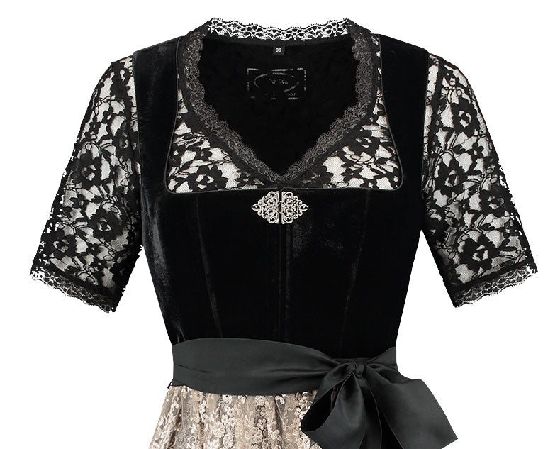 Luxe, allure en traditie komen samen in deze exclusieve 2-delige Dirndl van zwart fluweel en jacquard van Haus Huberts.