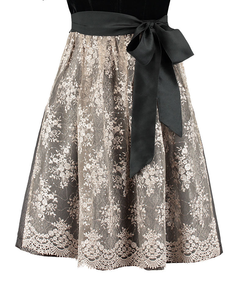 Deze dirndl is bij uitstek geschikt voor avondfeesten, trachtenbruiloften, gala’s of het Oktoberfest in stijl.