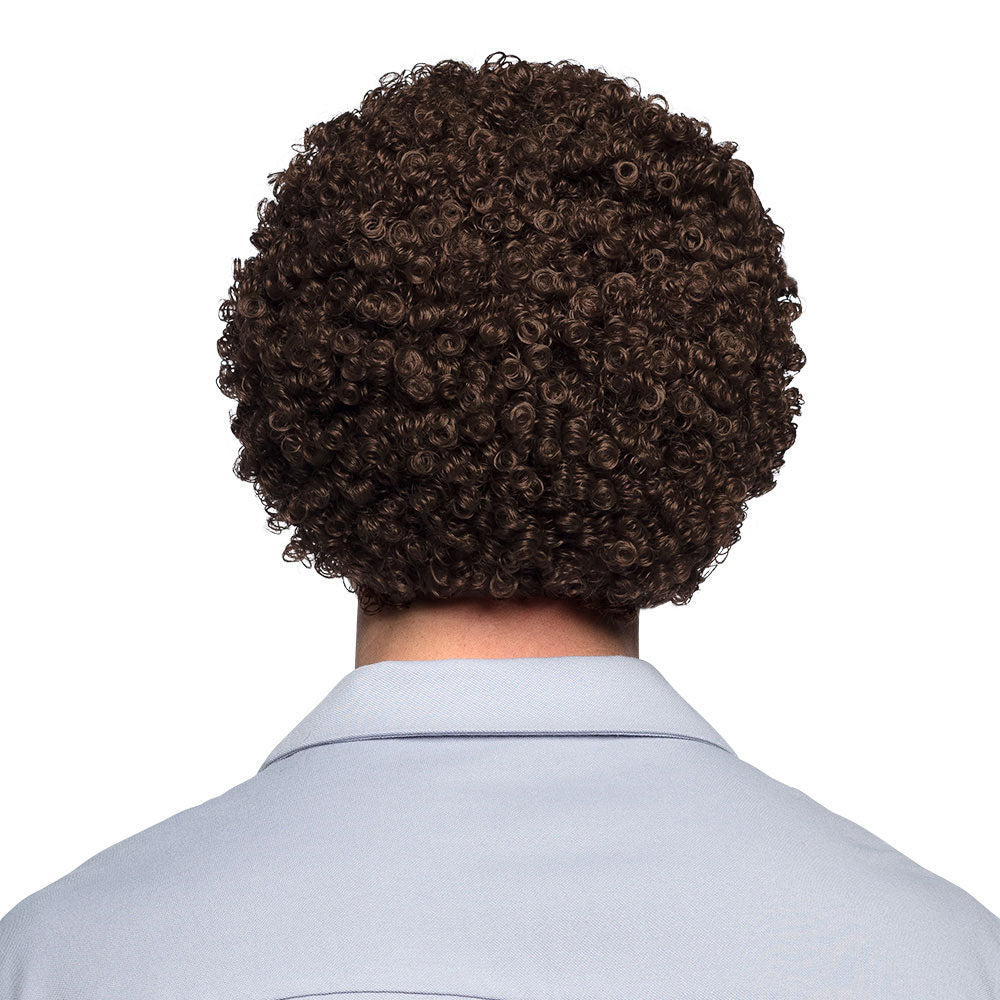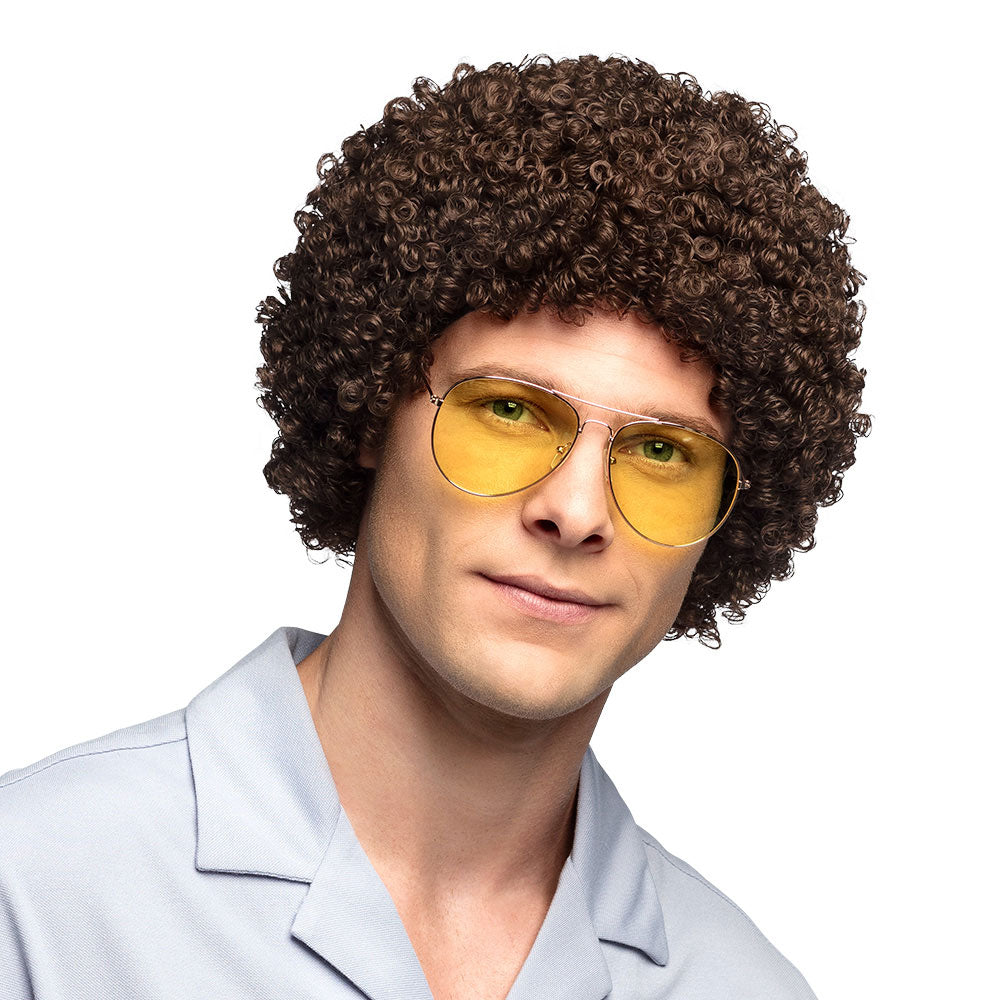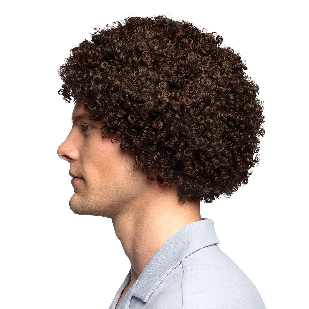 Ga terug in de tijd en laat de disco vibes herleven met deze donkerbruine krullenpruik! Het korte, volumineuze krulhaar brengt je in één klap terug naar de swingende jaren ’70.