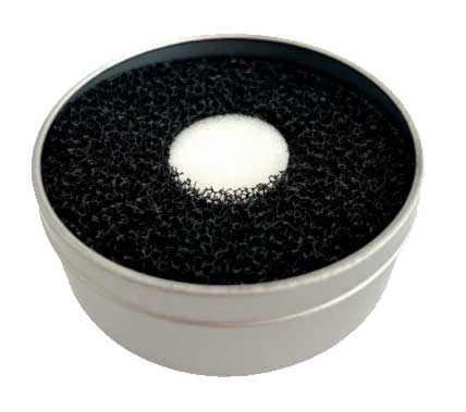 De Dry brush cleaner is een blik met twee schoonmaaksponsjes erin. De Dry brush cleaner in blikje reinigt penselen van zowel poeder als glitters.