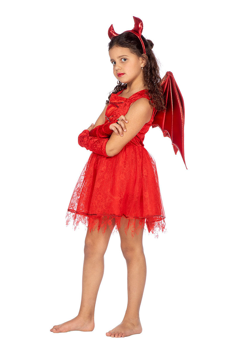 Een mooi Duivel Jurkje Met Vleugels En Tiara voor Kinderen.