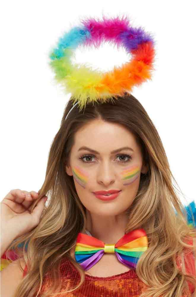 Dit Engel Halo Aureool met een imitatie bont, in de kleuren van de regenboog, maakt je outfit helemaal compleet. Perfect voor een verkleed feestje maar zeker ook voor Carnaval of een fout Feestje.