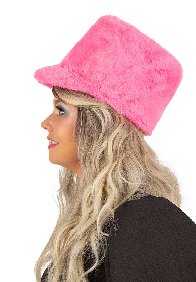 Fanfarehoed pluche roze (verstevigde binnenhoed)