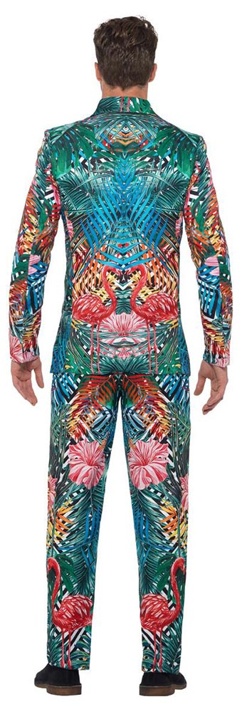 Dit kostuum bestaat uit een jasje met pantalon. Je hebt alleen een overhemd nodig voor onder het jasje om dankzij dit originele pak er gelikt en opvallend uit te zien. Dit Flamingo Hawaii herenkostuum is zeer geschikt voor o.a. een caribisch feestje, carnaval en een foute party.