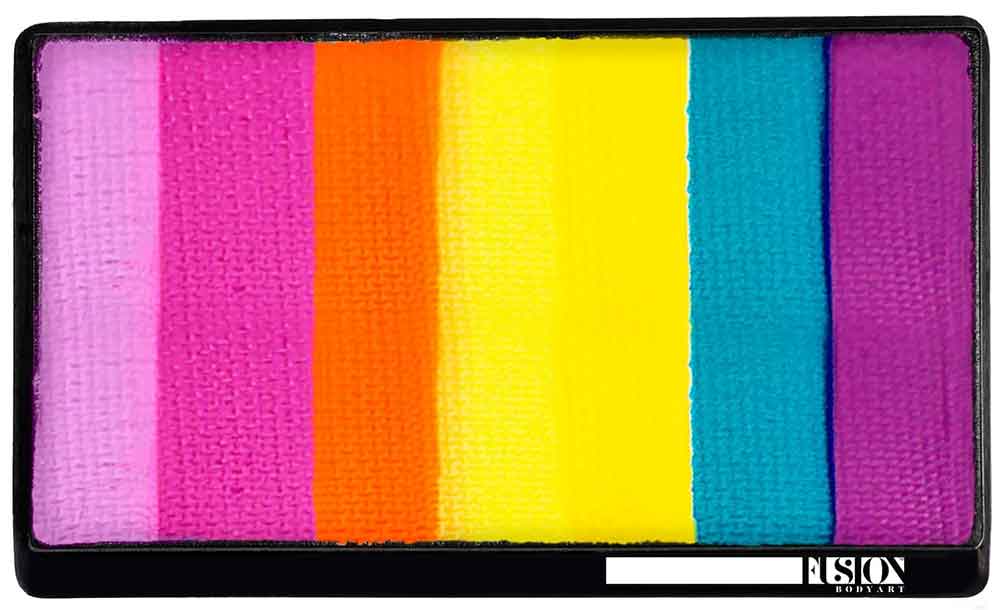 Fusion Body Art Splitcake Schmink is snel en gemakkelijk aan te brengen met een vochtige penseel of spons. Als je alle kleuren in één keer met een penseel aan wilt brengen dat kan je het beste penseel S20 gebruiken. Fusion Rainbow Cake schmink kan eenvoudig worden verwijderd met water en zeep of met de schminkwashand. Omdat Fusion Body Art schmink veel pigment bevat adviseren wij om Marly Skin huidbeschermingsschuim aan te brengen voordat je gaat schminken. Fusion Body Art schmink bevat alleen hoogwaardige FDA- en EU-conforme huidveilige pigmenten en ingrediënten die zacht zijn voor de huid. Elke kleur is zorgvuldig ontwikkeld om u de helderste en meest dekkende kleuren te geven voor jouw schminkontwerpen. Fusion Body Art schmink droogt snel en heeft na droging een veegvaste finish. Je kunt kleuren over elkaar heen leggen zodra de basiskleur droog is, en je kunt Fusion Body Art schmink mengen terwijl ze nog nat zijn om eindeloos mooie tinten te maken.