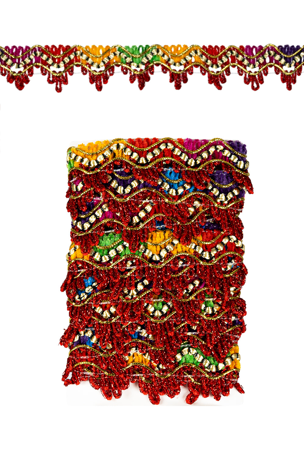 Galon geweven rood + gouddraad