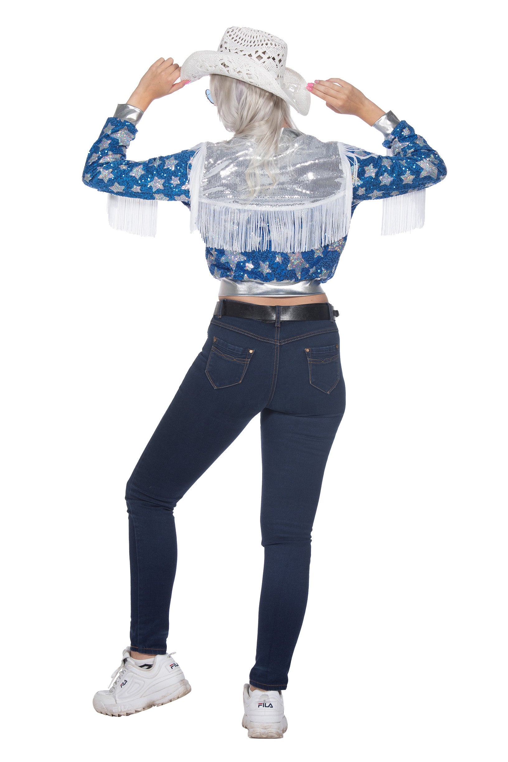 Glamorous dames jas blauw met sterren