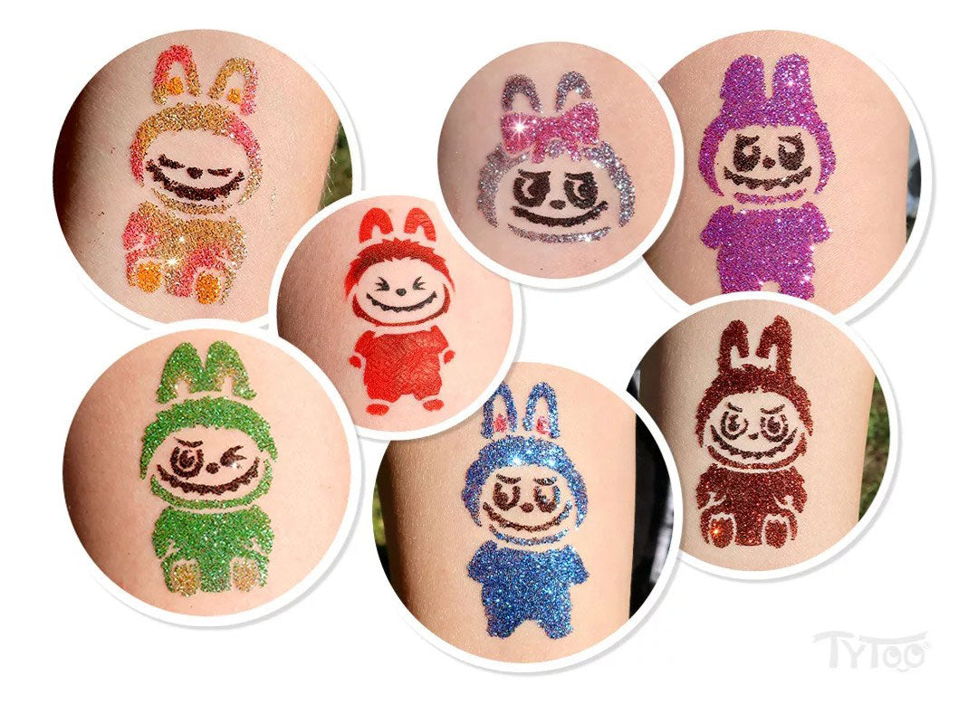 Glittertattoo sjablonenset Labubu