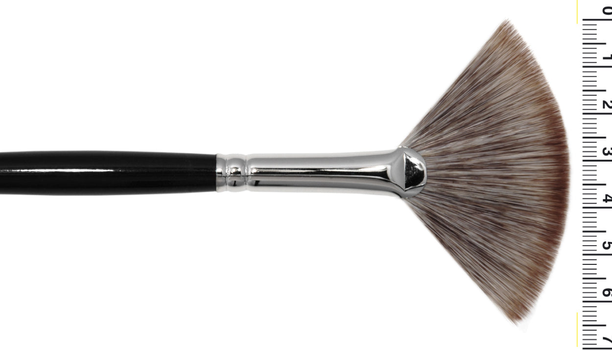 De penselen hebben een zwarte steel en het nummer geeft de breedte in mm aan. Bij het waaiervormige borsteltje lopen de haren in een waaiervorm uit van 6 naar 60 mm.