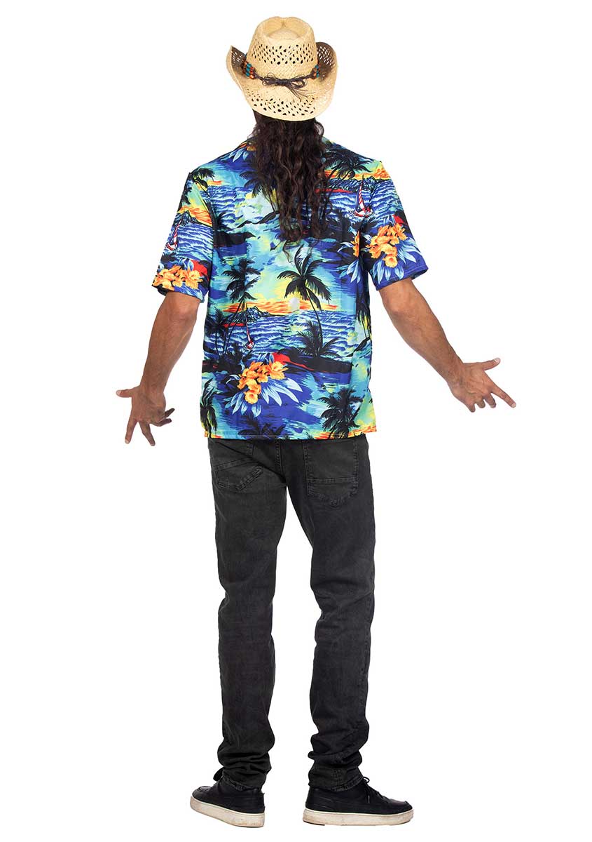 Een leuk Hawaii Shirt Blauw Palmboom Heren.