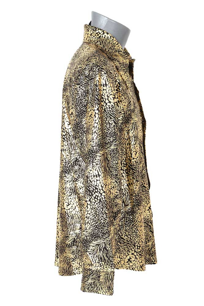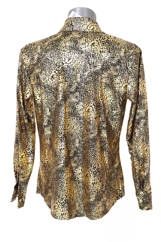 Het overhemd heeft een toffe reptielenprint en een boord met lange punten wat een disco uitstraling geeft.