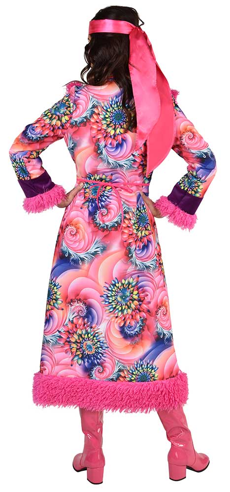 Een mooie carnavalsjas met een volledige print. De jas is op meerdere plekken afgewerkt met roze en paarse details.