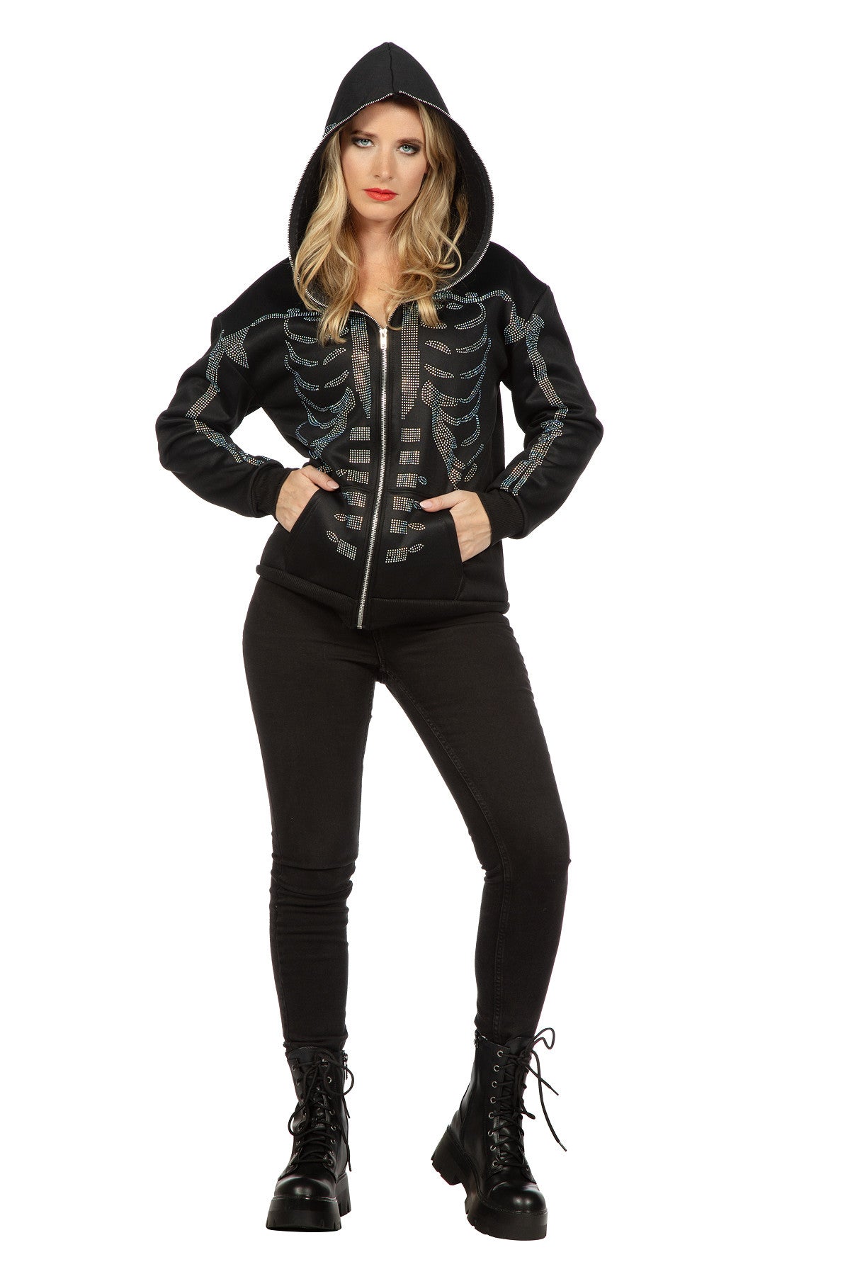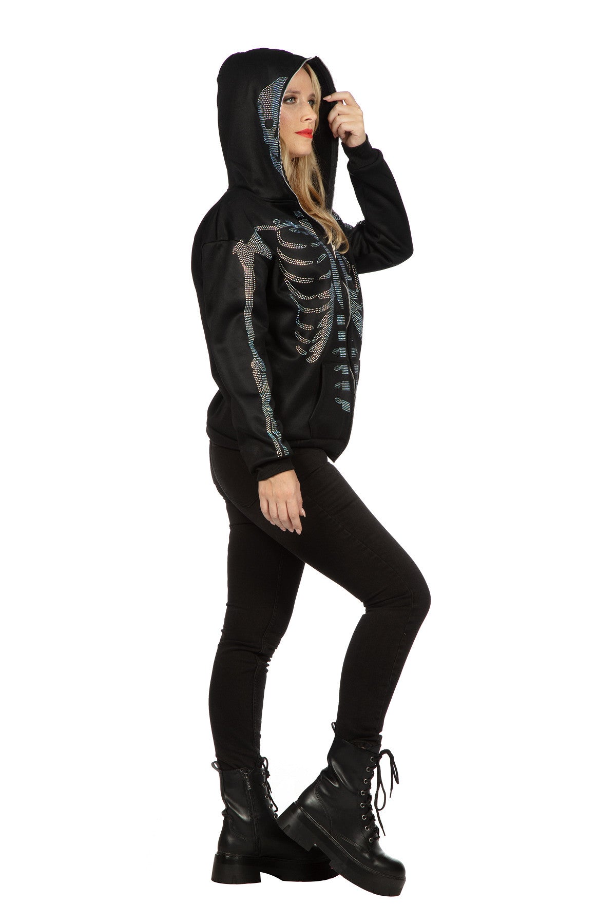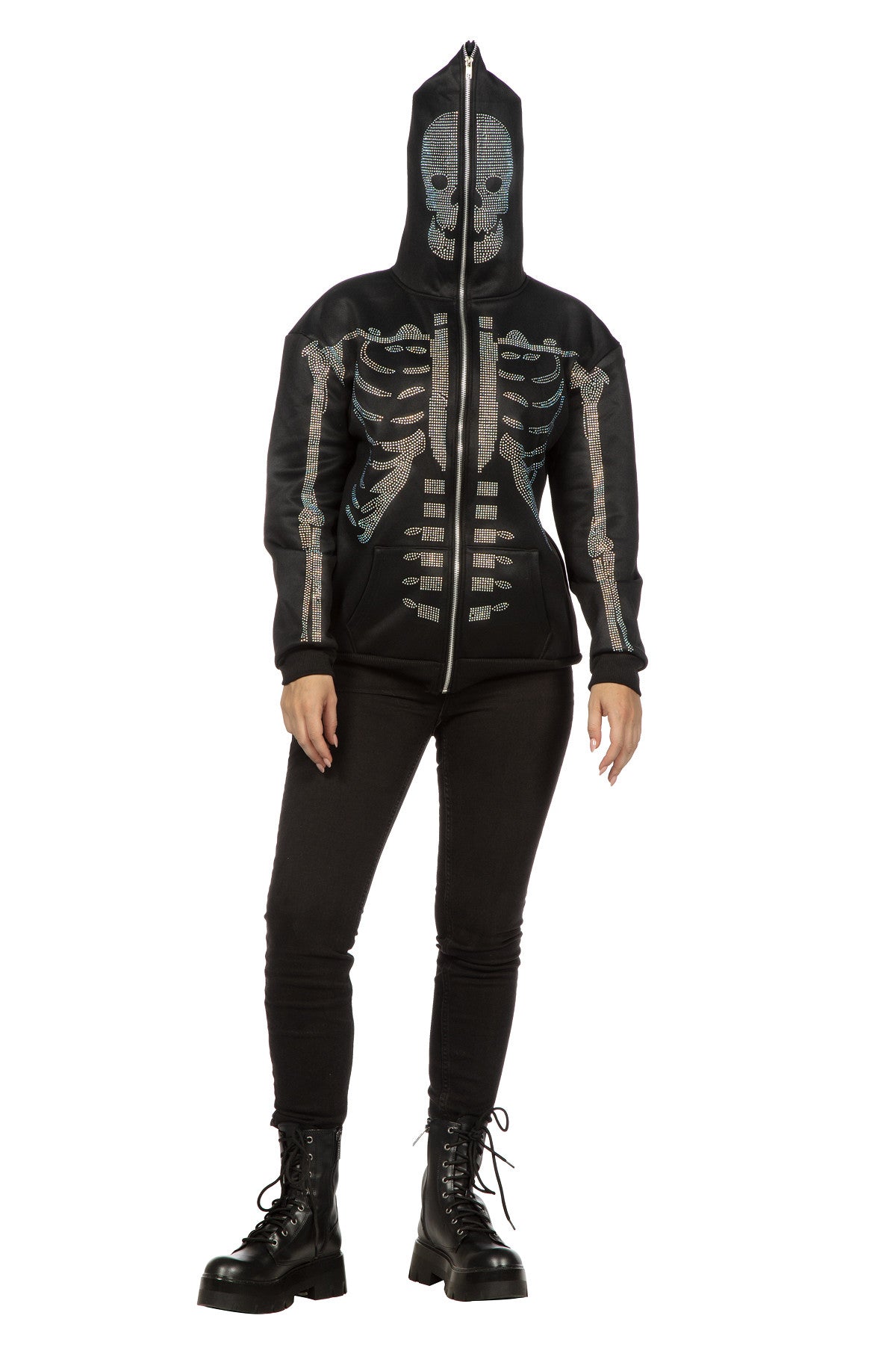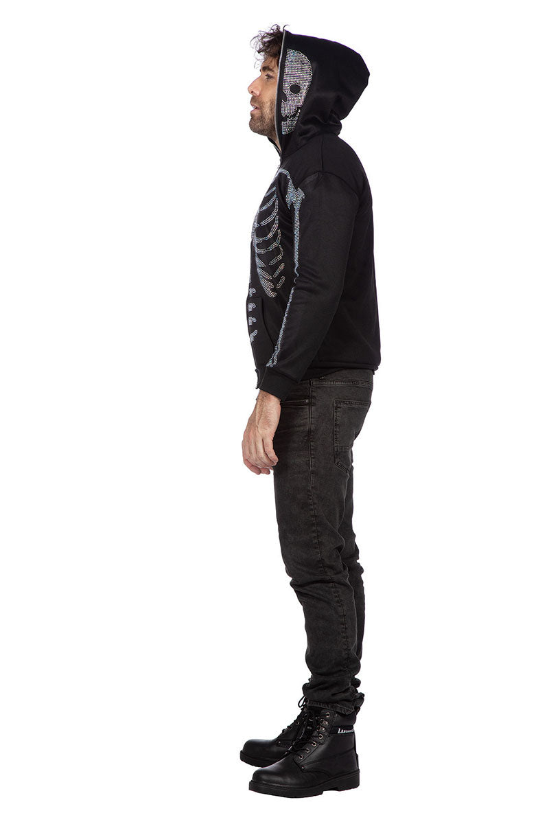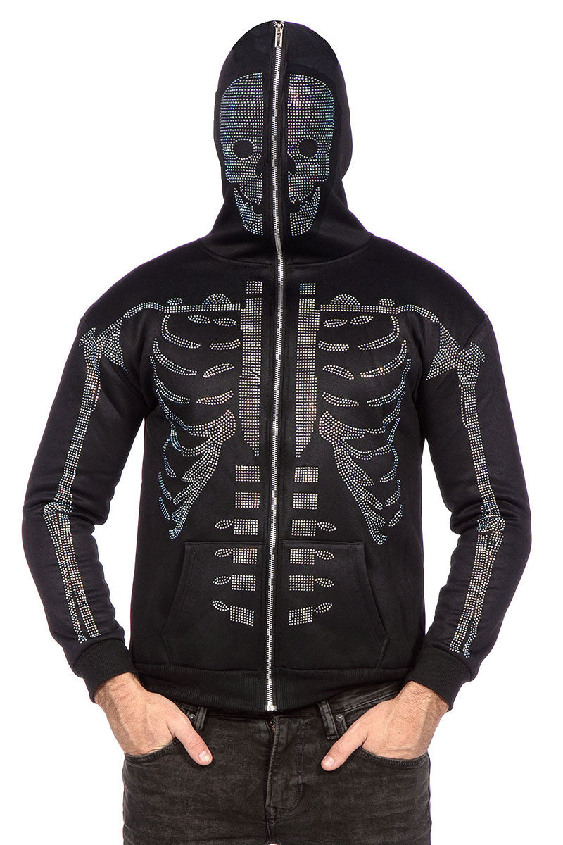 Een tof opvallende Hoodie Met Rits Skelet Strass Stenen voor Dames en Heren.