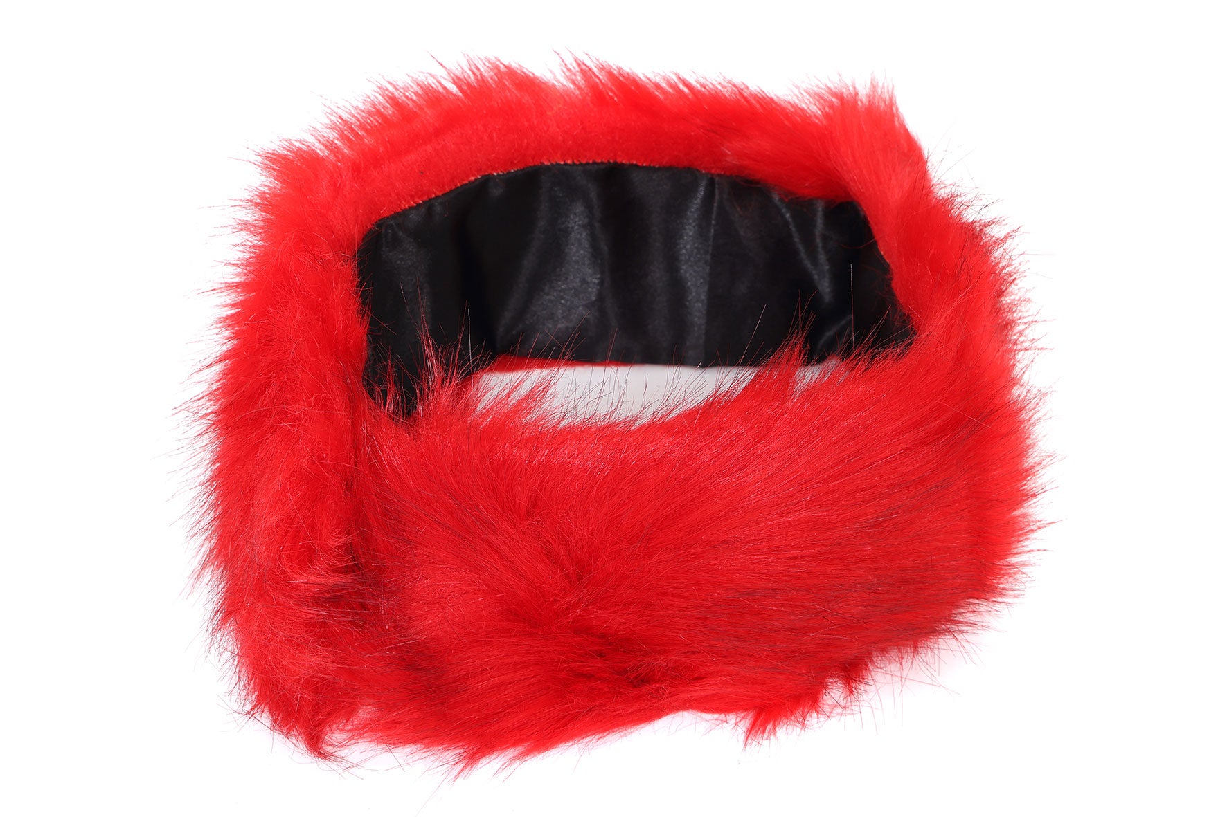 Geef je look meteen een winterse touch met deze mooie rode bont haarband!