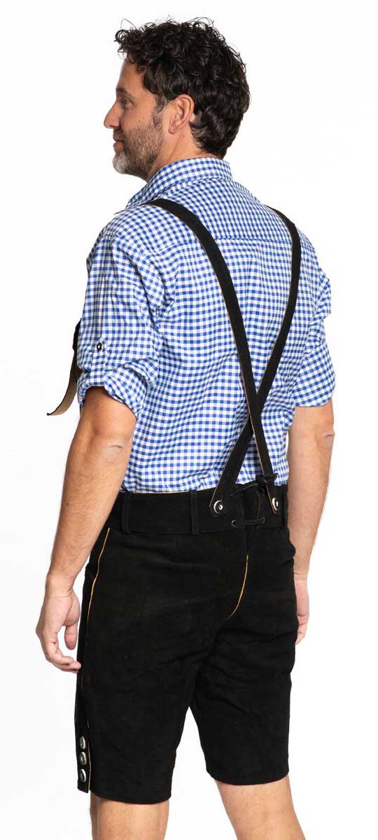 Deze lederhose worden standaard geleverd met bijpassende bretels. De lederhose is een kort model lederhose en valt net boven de knieën. De lederhose is gemaakt van een uitstekende kwaliteit wildleder, is aan de onderkant licht verstelbaar en heeft fraaie stiksels zoals alle lederhosen op het Oktoberfest. Dit herenkostuum is zeer geschikt voor het Oktober- of Bierfeest maar zeker ook voor o.a. carnaval of een thema party.