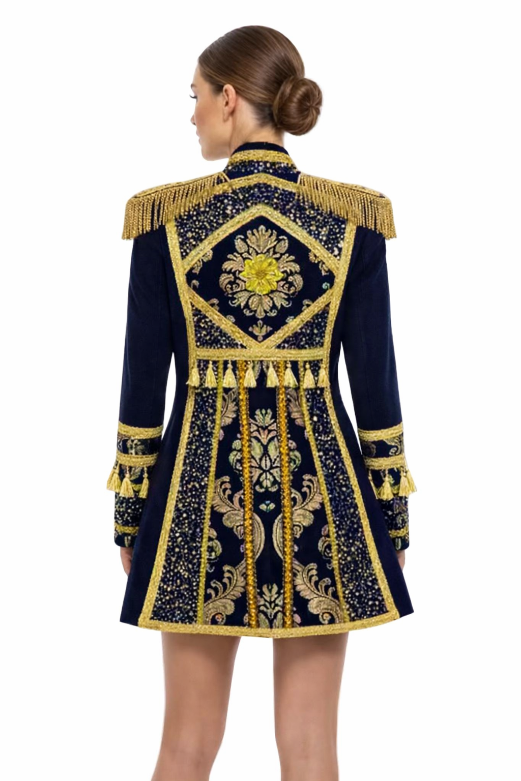 Maak een onvergetelijke entree met deze Luxe Carnavalsjas Firenze Dames. De jas is rijk gedecoreerd met gouden details, sierknopen, tassels en klassieke barokpatronen, wat zorgt voor een elegante en chique uitstraling. Perfect voor carnaval, of kostuumfeesten.