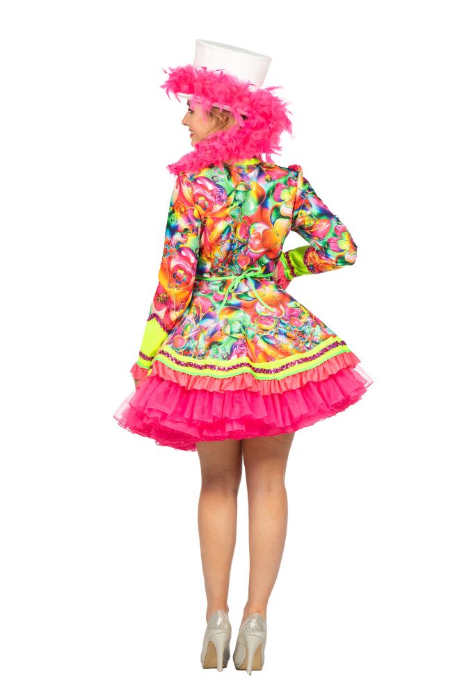 Een mooie Luxe Carnavalsjas Klavers Neon Roze voor Dames.