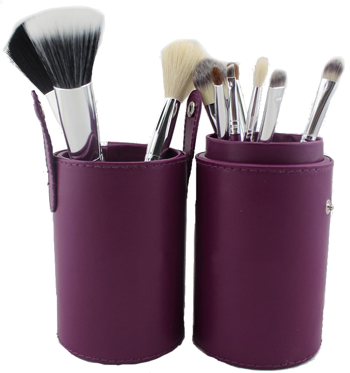 Dit ronde doosjes van semileder bevat 12 verschillende make-up borstels en penselen.