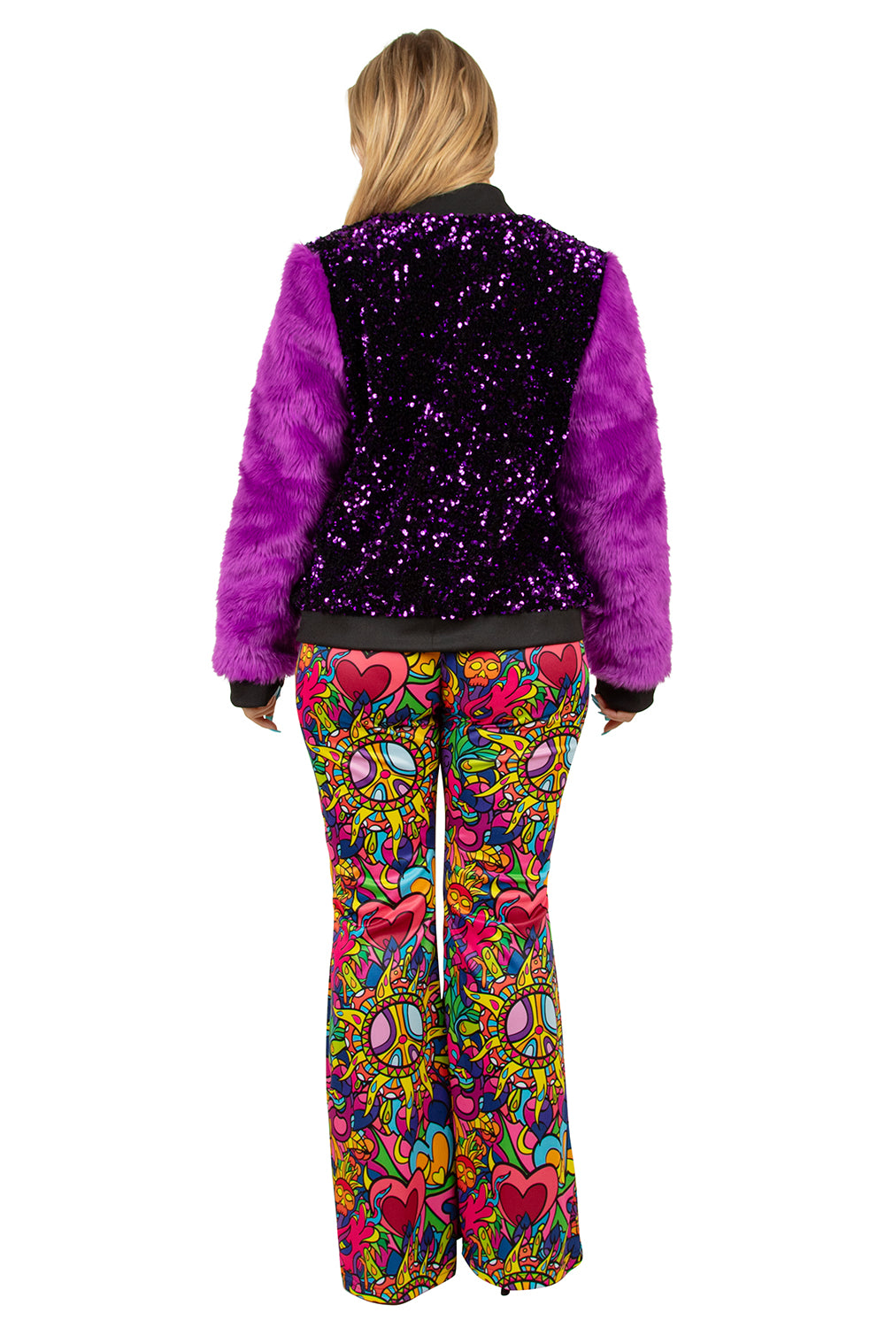 Deze Paillettenjas voor in metallic paars met mouwen van bont is een perfecte aanvulling op je carnavals outfit. Deze jas is leuk te combineren met bijvoorbeeld een jurk of petticoat.