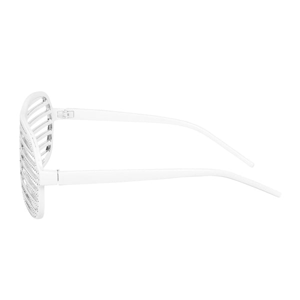 De witte lamellenbril is versierd met glittersteentjes perfect om je outfit compleet te maken.
