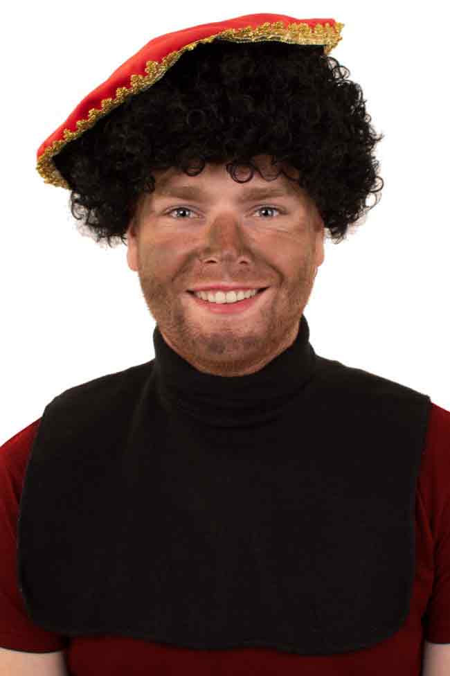 De pietencol draag je onder het pietenpak en is ter bescherming van het kostuum, tevens zorgt de zwarte col ervoor dat je niet te laag hoeft te schminken.