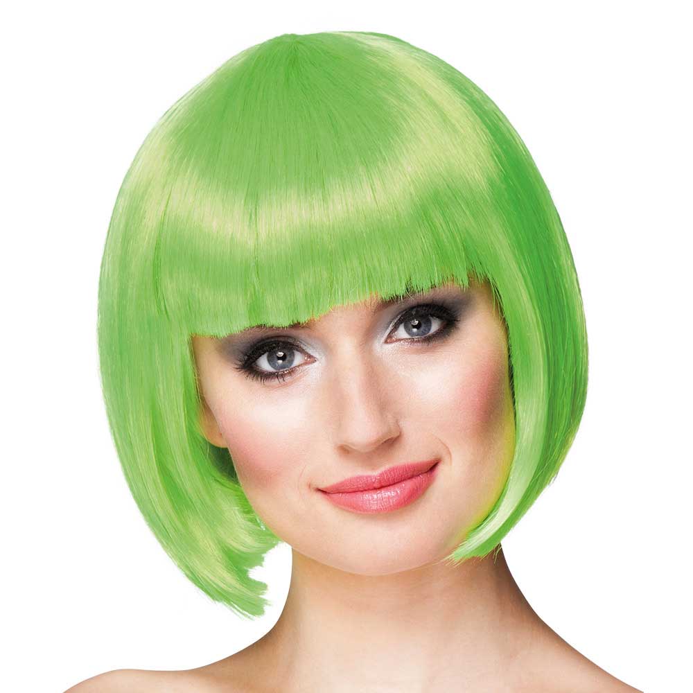 Deze Pruik Cabaret limoengroen is een prachtige felgroene korte boblijn pruik, perfect om je te verkleden met Carnaval of een verkleed feestje.