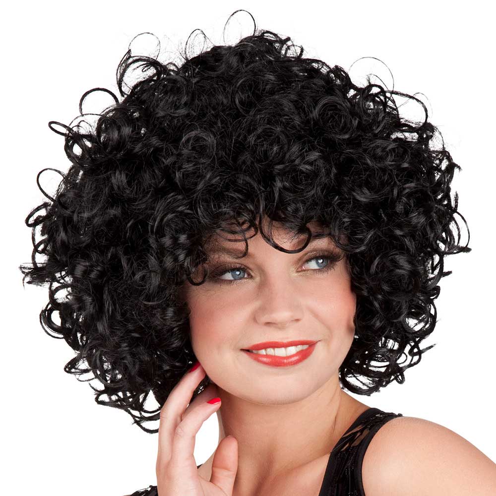 Deze Pruik Candice zwart is een prachtige zwarte pruik met krullen, perfect om je te verkleden met Carnaval of een verkleed feestje.
