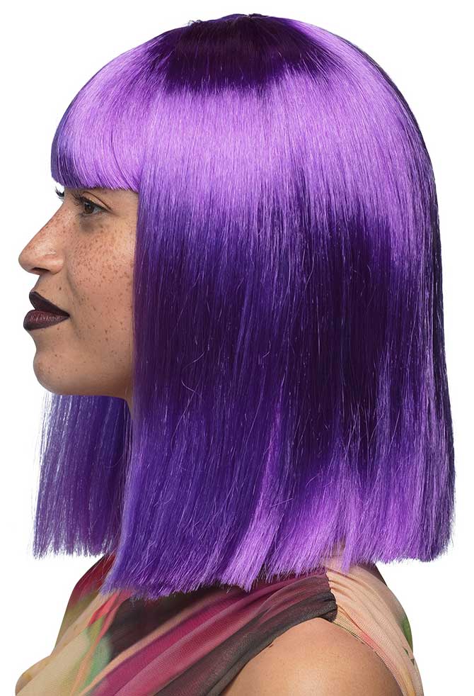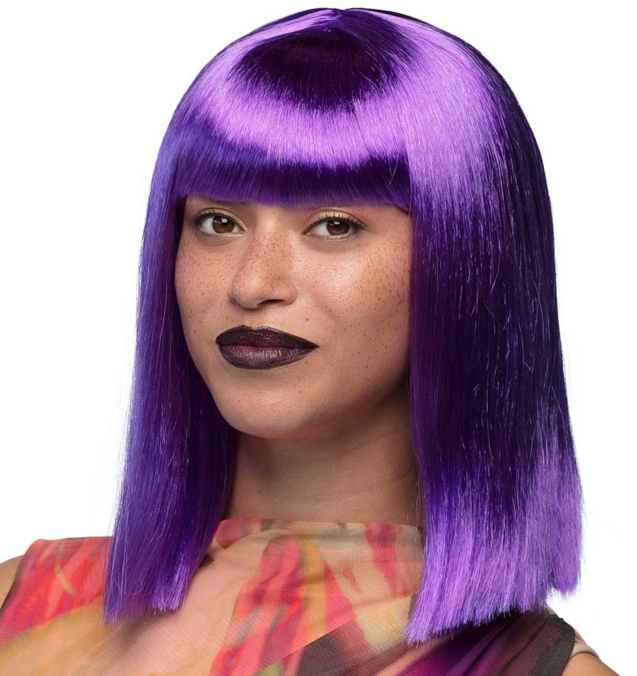 Deze Pruik Dance Neon Paars is een mooie pruik met halflang stijl haar met rechte pony, perfect om je te verkleden met Carnaval of een verkleed feestje.