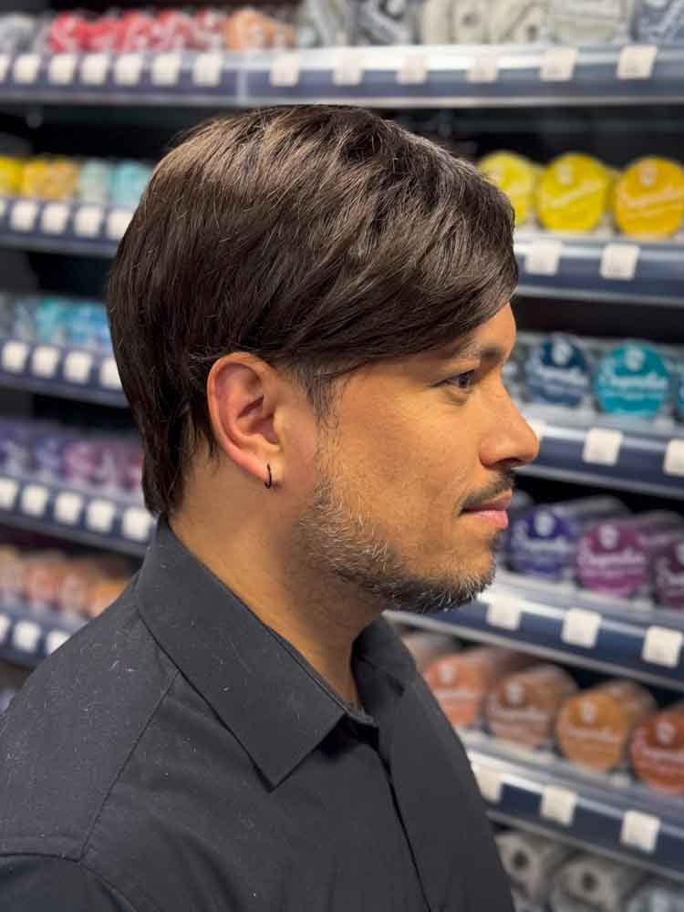 Deze herenpruik is een stijlvolle pruik gemaakt van zijdezacht Kanekalon, een Japanse synthetische vezel die niet van echt haar te onderscheiden is.