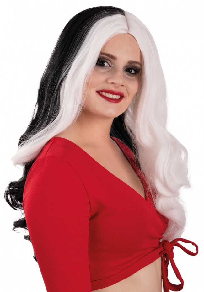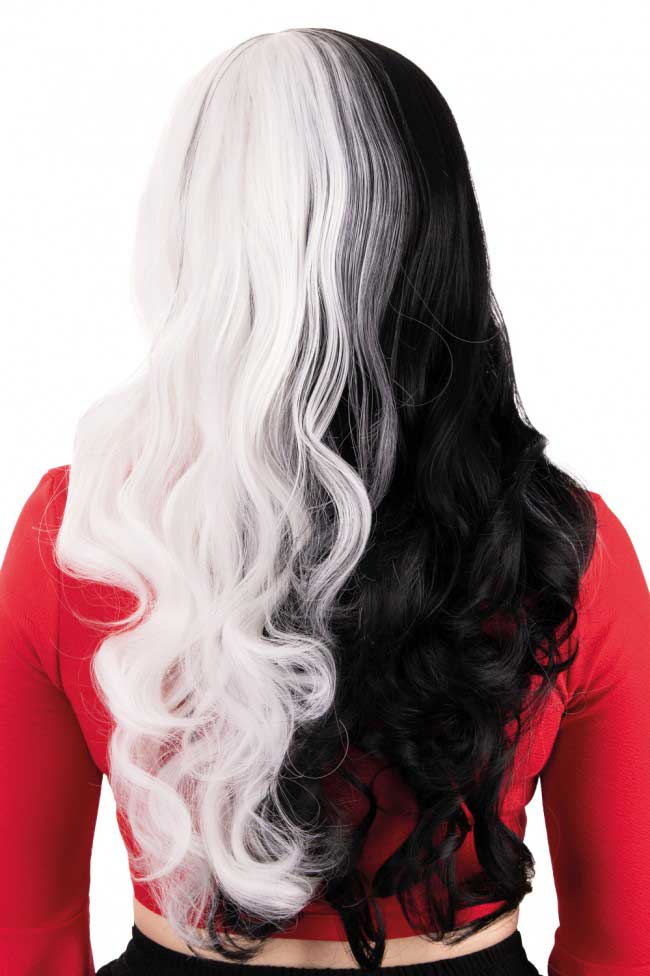 Pruik Selena Zwart Wit met Witte Lok