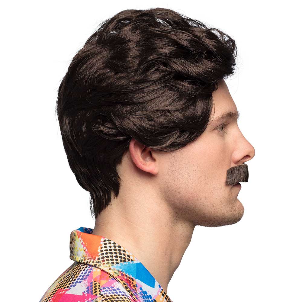 Deze Pruik Vance met snor in de kleur bruin is perfect om je te verkleden met Carnaval of een verkleed feestje.
