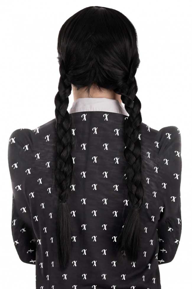 Deze Pruik Wednesday deluxe is een kwaliteitspruik gemaakt van zijdezacht Kanekalon, een Japanse synthetische vezel die niet van echt haar te onderscheiden is.