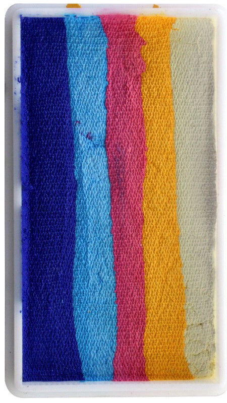 De Splitcake schmink van PXP Professional Colours is een combinatie van verschillende kleuren waterschmink. Splitcake schmink wordt ook wel rainbowcake of colorblocks genoemd. De Splitcake schmink van partyxplosion zijn verschillende kleuren waterschmink naast elkaar in een doosje. Als je met de Splitcake schmink werkt dan wordt dit ook wel de one stroke techniek genoemd.